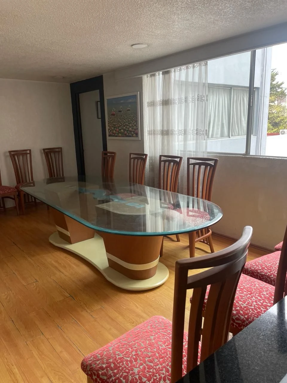 Sala-comedor con ventanales grandes, ideal para reuniones familiares
